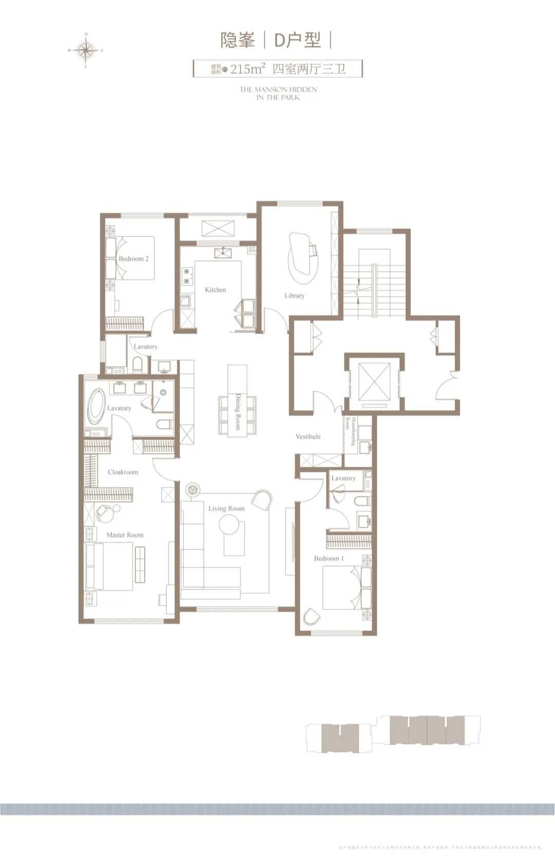 项目目前主力在售产品为建面约215㎡户型,规划四室两厅三卫,一梯两户的设计,最大化提高实际使用率,电梯双向开门,每位居者都能享有私家入户的仪式感与独立电梯厅的私属空间。