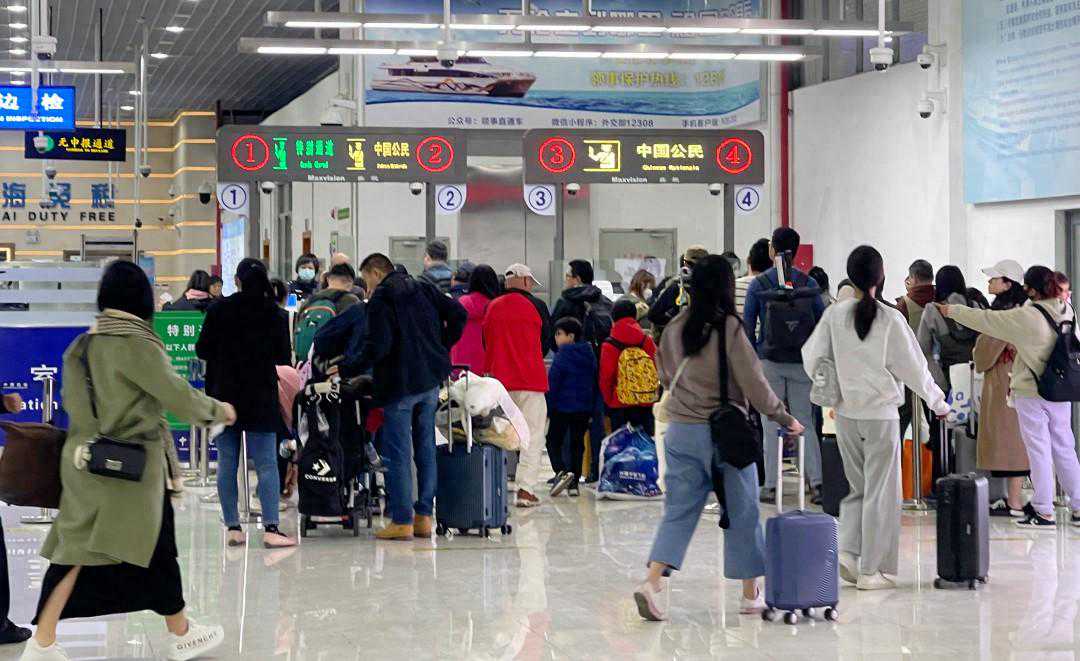 记者12月27日从九洲出入境边防检查站获悉,据统计,该站12月26日查验旅客约0.35万人次、出入境船舶24艘次,创下自年初口岸恢复通关以来单日客流新高。