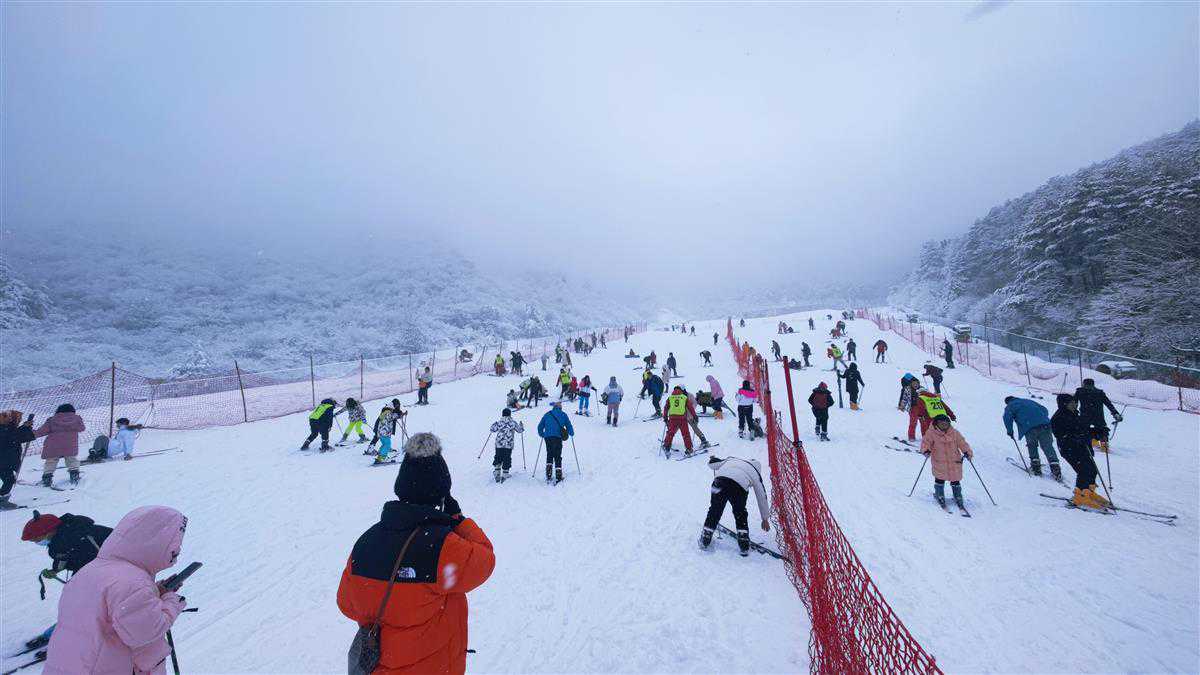 极目新闻记者了解到,九宫山滑雪场海拔1450米,垂直落差300米,面积6万平米,建有练习场,初级、中级雪道各一条。此外,滑雪场配备多套大小魔毯和全套进口造雪设备,拥有进口雪具2000套,可同时容纳4000人游玩,还有雪圈及各种娱雪项目。