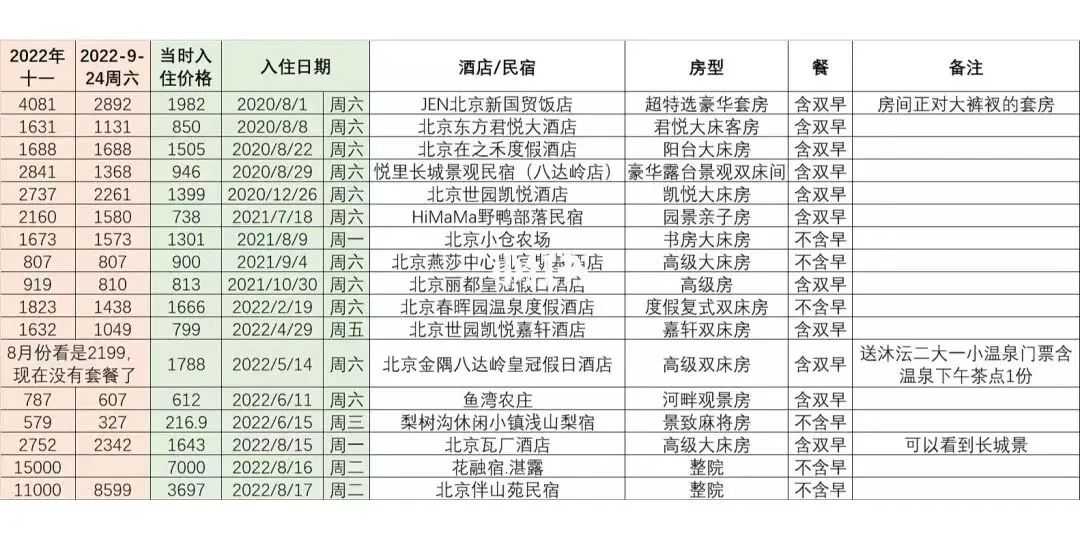 小红书网友“闪闪兜”发文表示,临近国庆北京周边住宿价格较此前上涨不少,并整理了自己从2020年8月份以来订过的酒店价格和国庆价格对比,感慨“瞬间觉得自己赚到了”。