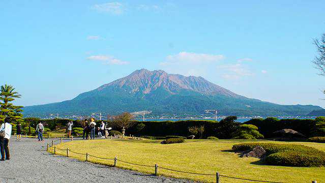 在鹿儿岛的第一站,我们来到岛津家族第19代家主岛津光久,在1658年建造的岛津家的别邸。最好看的还要算庭院了,这个庭院采用借景的手法将雄伟的樱岛作为园子里的山,将锦江湾作为园子里的水,一步一景美不胜收。