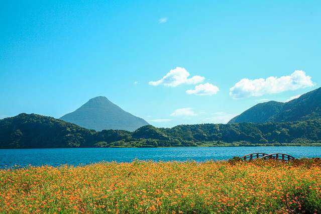 池田湖是九州岛上最大的湖,古代龙神传说中被称为开闻御池和神御池,湖面标高66米,深233米,最深处达海拔-167米,湖底是一个直径约800米,高150米的火山。