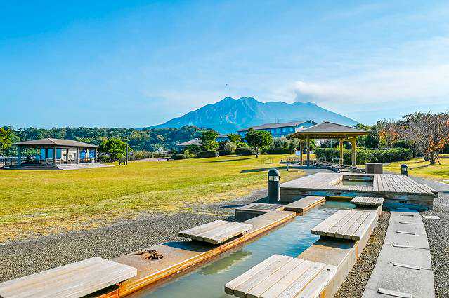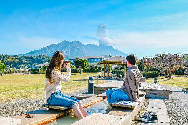来到樱岛,还得试试位于火山山麓,全日本最大规模的足浴——“樱岛”熔岩渚公园足浴。