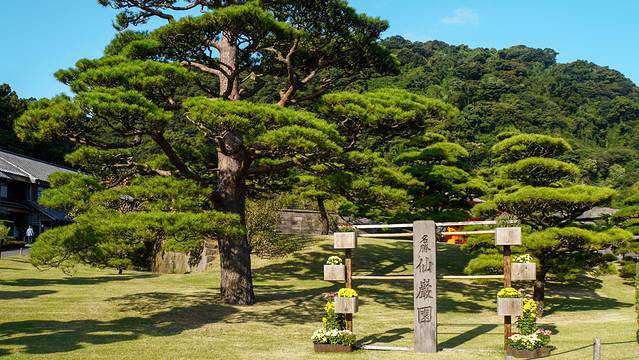 大家如果在不同季节到来,会感受到完全不同的美,每一年的2月上旬到4月是樱花季,大约150棵樱花树把庭院装点的落英缤纷!整个园子的面积大约在1.5万坪,这里供奉掌管美的神明「鹤岭神社」,还有全国稀有的「猫神」,无处不在诉说着萨摩的历史。