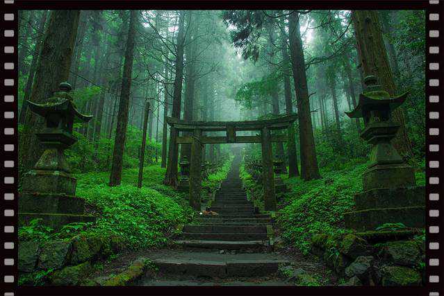 这是一个位于洞窟之中的神秘神社。巨大的岩石包裹着神社,形成了天然的洞穴。洞穴之外是汹涌的波涛,洞穴之内,是庄严肃穆的神宫。