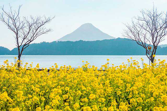 来到地貌独特的鹿儿岛县,当然要多观赏一些风景了,在萨摩半岛东南部一个近似圆形的火山湖——池田湖,顾名思义就是湖中有火山!